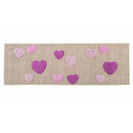 Мягкий прямоугольный коврик для ванной комнаты 50 на 90 см. Feel Lila серо-лилового цвета с фиолетовыми сердечками. Производство ТМ Irya (Турция).
