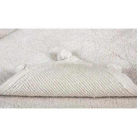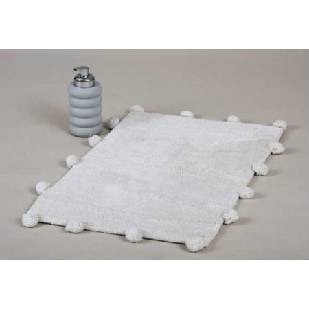 Мягкий прямоугольный коврик для ванной комнаты Alya Silver серебристо-бежевого цвета с бубонами по краям. Производство ТМ Irya (Турция).