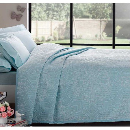 Модель Amadis Turkuaz голубого цвета с выдавленным красивым узором на покрывале. Предлагается с простынёй на резинке.