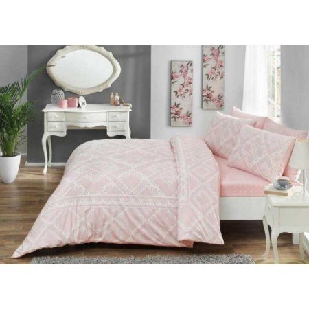 Модель "Celia Pudra" выполнена в розовых тонах. Простынь однотонная. Пододеяльник и наволочки с чуть светлым узором