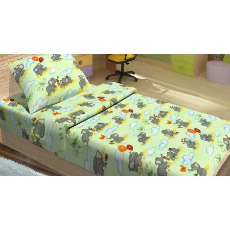Размер: простынь 100*150 см, пододеяльник 100*150 см, 1 наволочка 40*60 см.