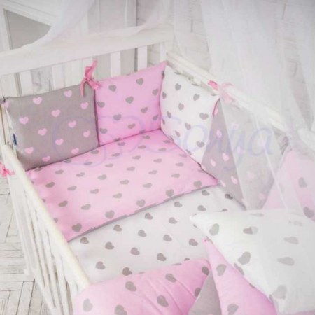 Детский комплект сменный "Серо-розовые сердца"