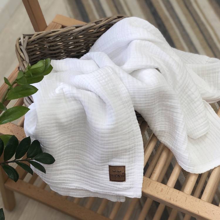 Детский плед Msonya Муслин Жатка Белый без бахромы