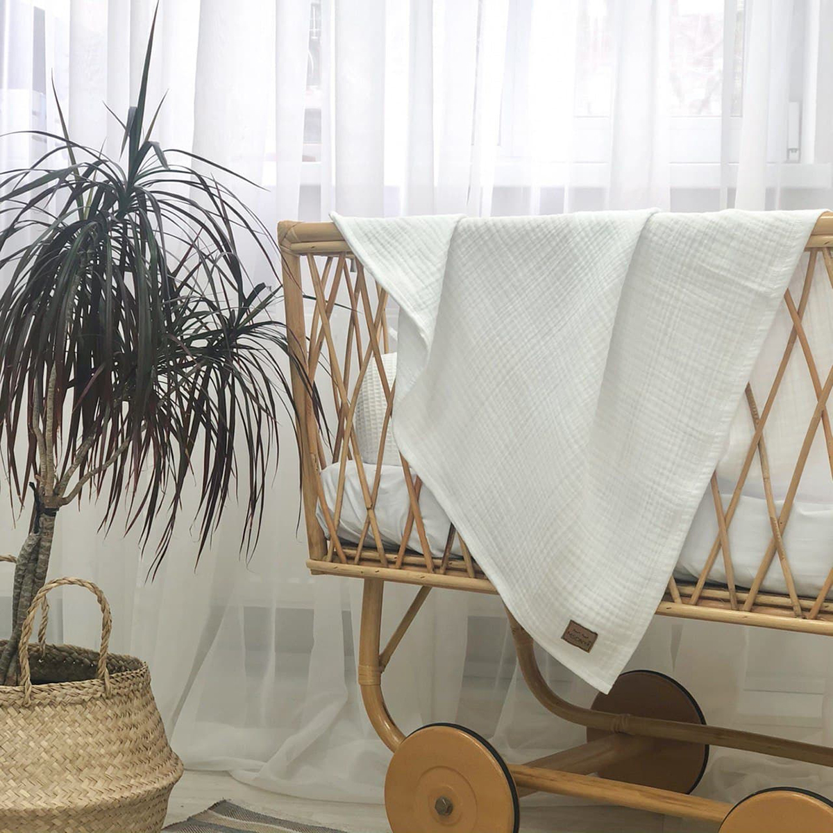 Продукция этой серии очень гипоаллергенная и гигиеничная. Отлично впитывает влагу, защищает от перегрева. Муслин лёгкий и компактный, поэтому пледик смело можно брать в дальнюю поездку. Также с ним любая прогулка будет для ребёнка безопасной и приятной.