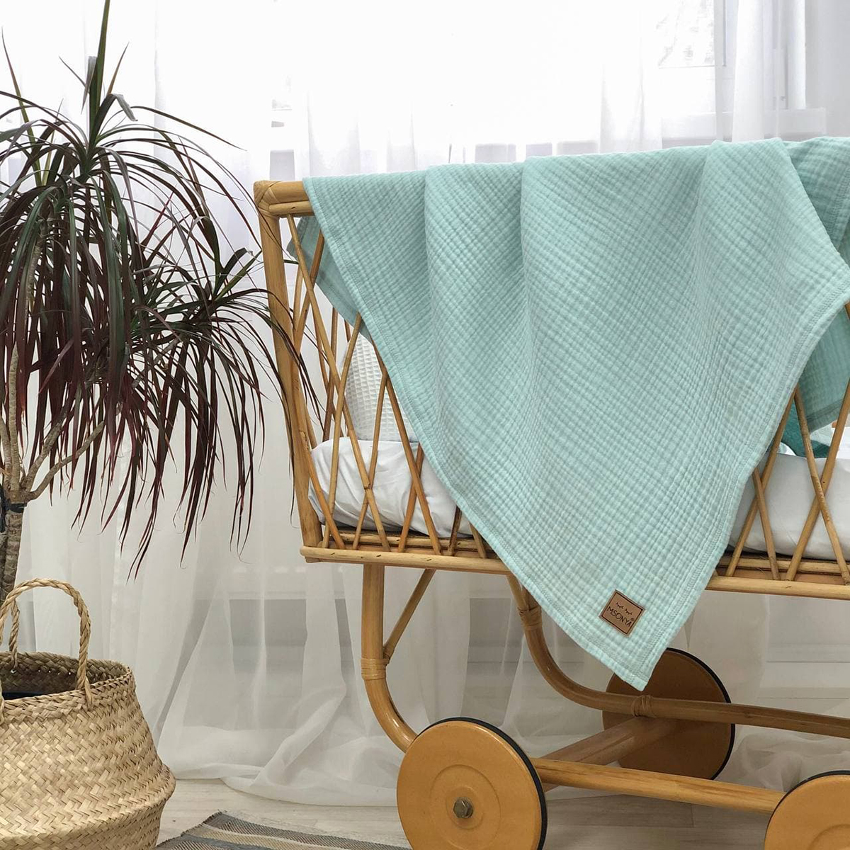Детский плед Msonya Муслин Жатка Мята без бахромы