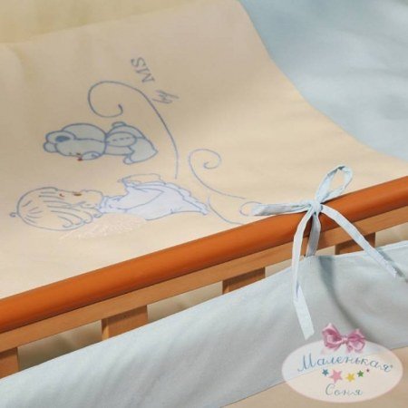 Сменое постельное бельё в кроватку для новорожденных "Ангел" изготавливается исключительно из хлопчатобумажной ткани.