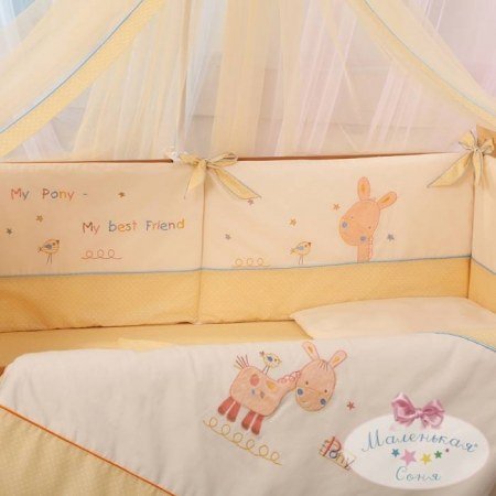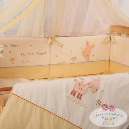 Оригинальное нежное сменное постельное бельё в кроватку "Пони" выполнено из ранфорса.
