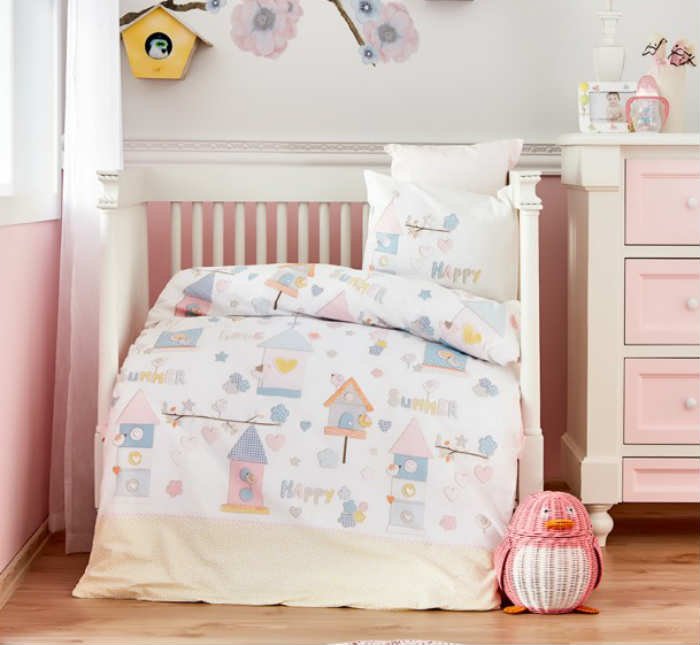 Комплект постельного белья в кроватку для новорожденного от турецкой торговой марки "Karaca Home" в подарочной коробке.