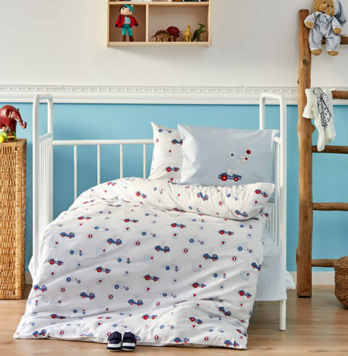Модель "My car" для мальчика выполнена из натурального хлопчатобумажного ранфорса с изображением машинок.