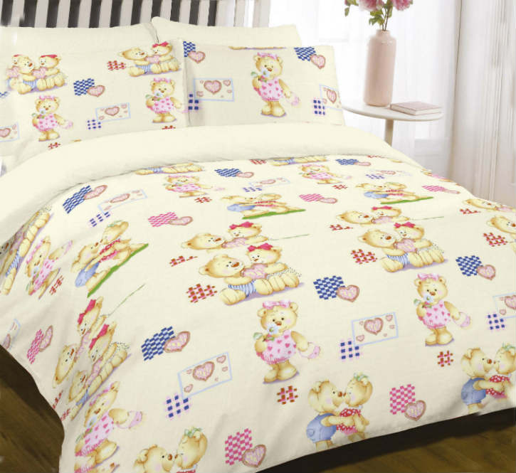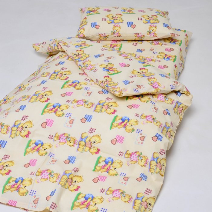 Размер: простынь 100*150 см, пододеяльник 105*145 см, 1 наволочка 40*60 см.