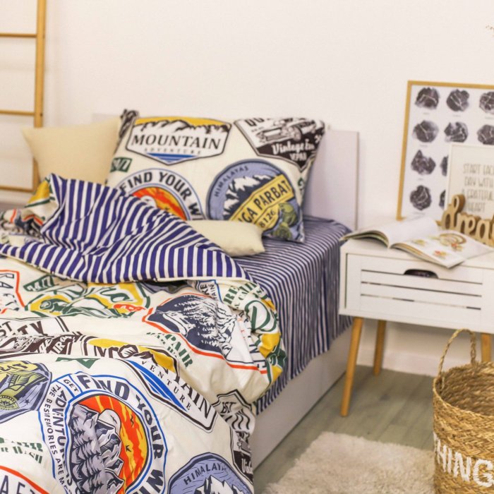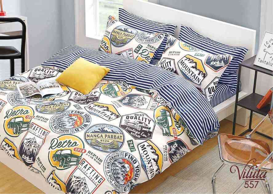 Размеры: простынь 145*214 см, пододеяльник 143*210 см, 1 наволочка 50*70 см.