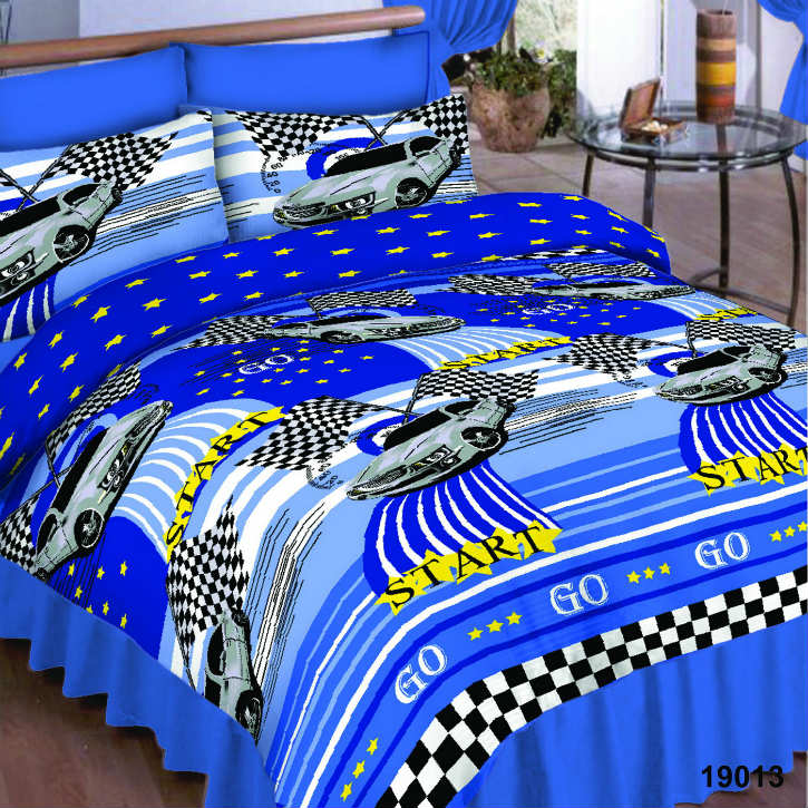Модель 19013 синего цвета от украинского производителя Вилюта с изображением стартующего гоночного автомобиля.