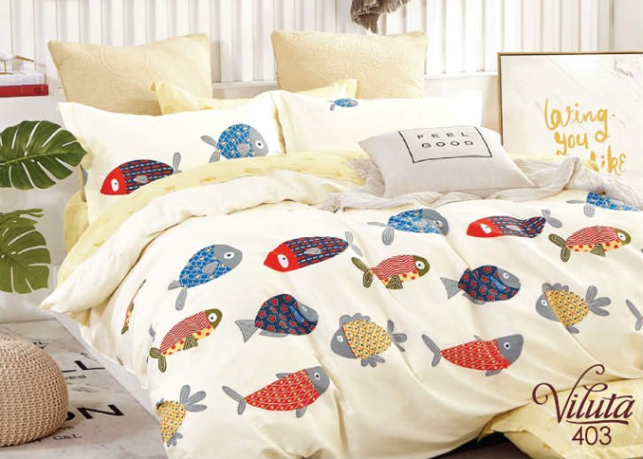 Модель 403 молочного цвета с рыбками на пододеяльнике.