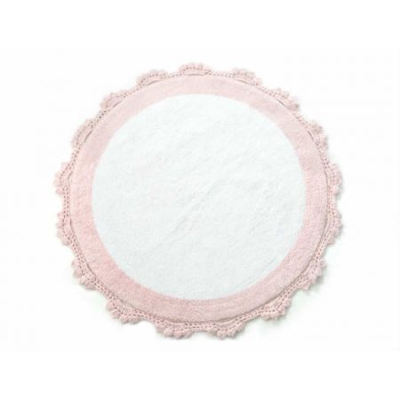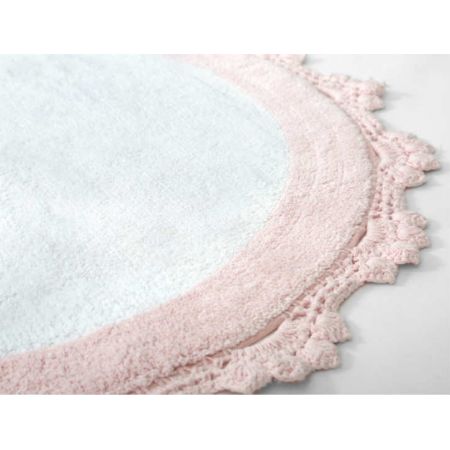 Мягкий круглый коврик для ванной комнаты Doreen Pembe-beyaz розово-белого цвета с кружевом по краю. Производство ТМ Irya (Турция).