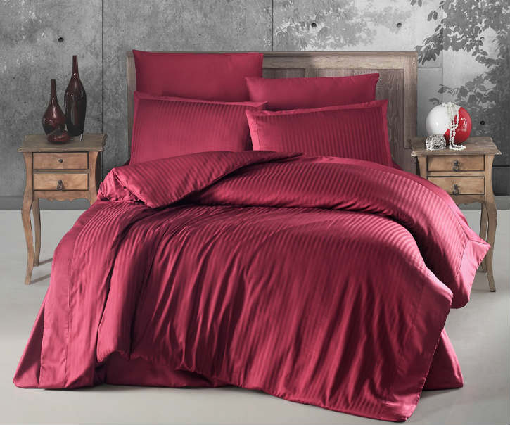 Постельное бельё Ecosse VIP сатин страйп Clared Red красный евро
