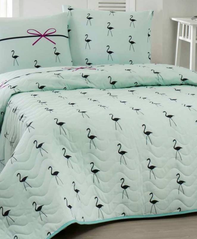 Стёганое покрывало с наволочками Eponj Home Flamingo Mint
