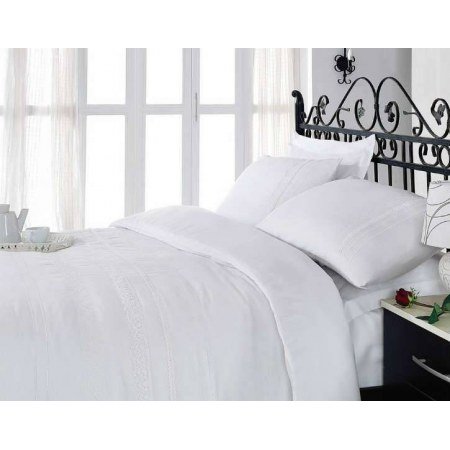 Белые комплекты с вышитым небольшим ажуром создадут впечатление достатка и продемонстрируют тонкий вкус хозяйки. Белоснежность постельного белья обеспечивает эффект свежести в комнате.