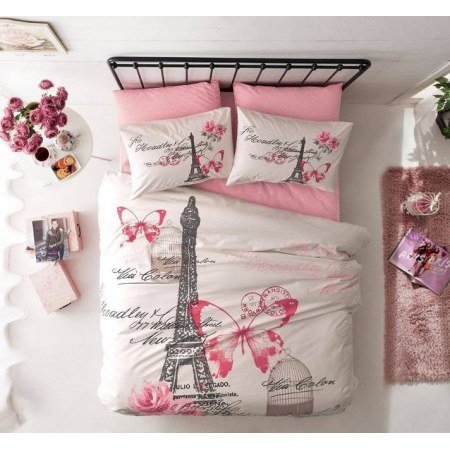 Постельное белье евро размера от торговой марки TAC - турецкого производителя домашнего текстиля премиум класса давно завоевало сердца миллиона потребителей. Комплект «Giselle» выполненный в бело-розовых тонах с изображением Эйфелевой башни отшивается исключительно из 100% хлопковой ткани - ранфорс. Она отлично пропускает воздух, это прочный и очень износостойкий материал. Своей насыщенностью красок, не теряющих своей яркости даже спустя много лети много стирок, эта ткань завоюет Ваше сердце раз и навсегда.