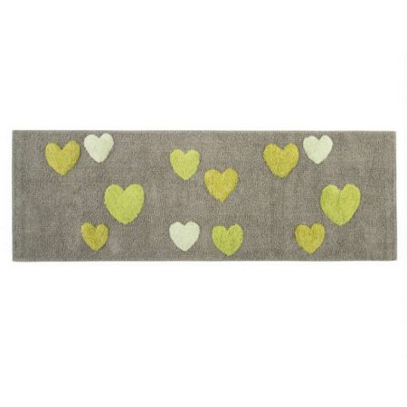 Мягкий прямоугольный коврик удлинённой формы для ванной комнаты Feel K. Yesil серо-зелёного цвета с салатовыми сердечками. Производство ТМ Irya (Турция).