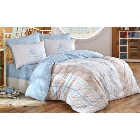 У модели Fulvia Mavi простынь и низ пододеяльника голубые, а верх бежевый. Изготавливается в полуторном и евро размерах.