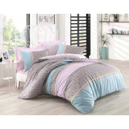 Модель Jayla Lila имеет лиловую простынь и серо-голубой пододеяльник.
