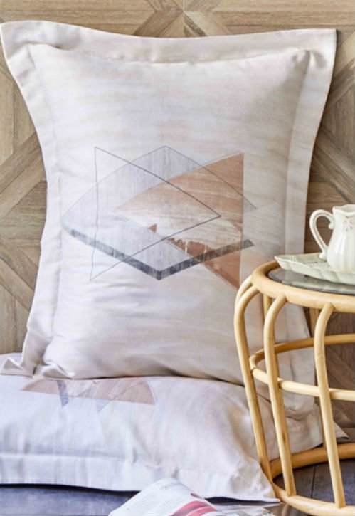 Модель Arles somon 2019-1 из мягкого сатина бежевое с треугольниками лососевого цвета.