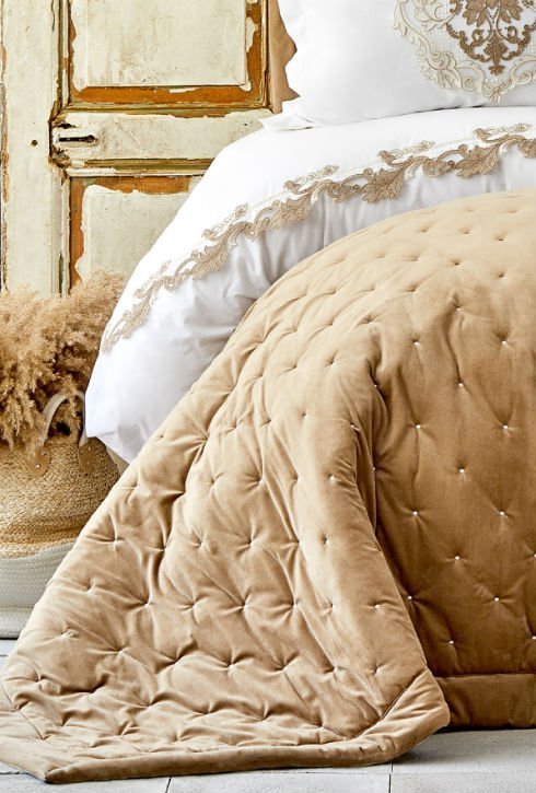 Набор постельное белье с покрывалом + плед Karaca Home - Chester 2020-1 bej бежевый евро