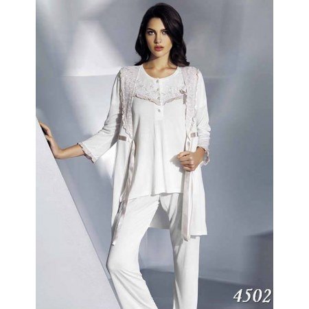 Пижама кружевами от турецкого производителя ТМ Mariposa выглядит очень элегантно. При выборе комплекта Ecru 4502 к Вашей утонченности и изысканности добавится ещё и королевская роскошь.