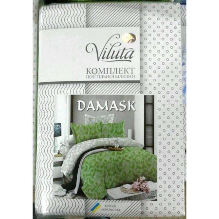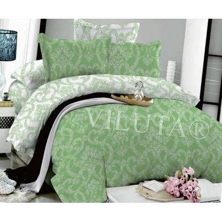 Днепропетровская фабрика постельного белья "Вилюта" представляет двуспальный комплект "Ахтар". Этом набор из поплина серии Дамаск (100% хлопок) выполнен в красивых нежных оттенках зелёного цвета.