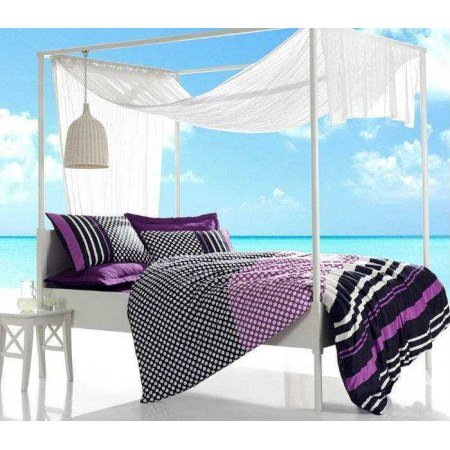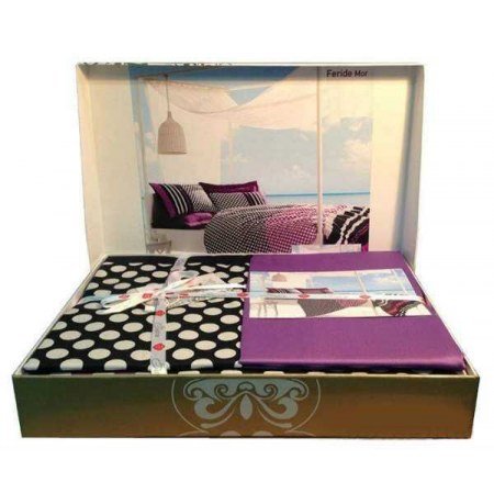 Комплекты постельного белья TM Cotton Box из печатного сатина с яркими набивными узорами создают спальне неповторимую атмосферу романтики и изысканности. Стильный фиолетовый с синим набор "Feride 1" покорит Вас необычайно красивым сочетанием горошка и полосок. Он станет ярким дополнением в интерьере Вашей спальни и всегда будет дарить отличное настроение.