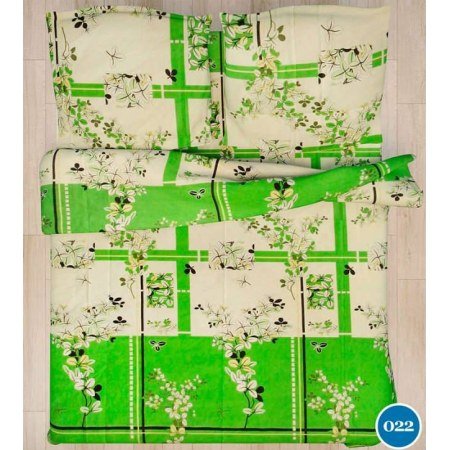 Модель арт. 022 представлена в семейном размере с двумя пододеяльниками и большой простынёй 215 на 240 см. Красочная расцветка привлекает к себе внимание яркостью зелёного цвета, благоприятно действующего на нервную систему человека.