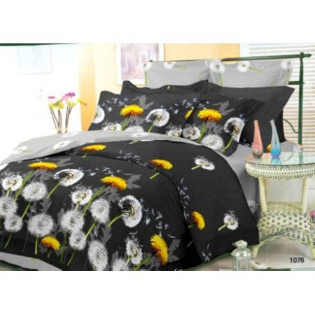 Модель 9847 "Одуванчики" от украинского производителя Вилюта выполнена в красивых чёрных тонах с белыми и жёлтыми одуванчиками. Каждая хозяйка захочет купить постельное бельё нежного небесного цвета, чтобы сделать комнату ещё изысканнее.