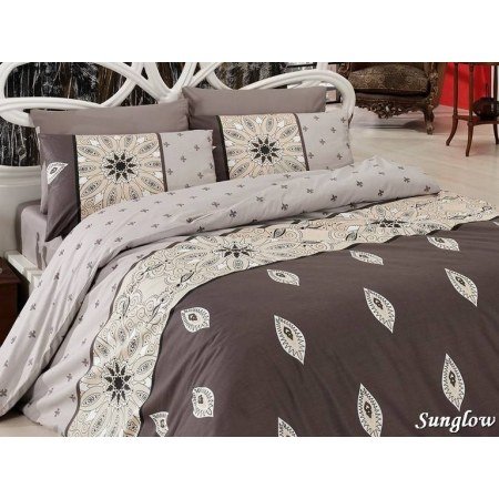 Модель "Sunglow" выполнена в различных оттенках коричневого цвета от светло-бежевого до шоколадного. Две наволочки и простыня однотонные, а ещё две - в тон пододеяльнику украшены красивым орнаментом.