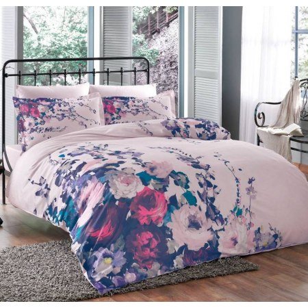 Комплект постельного белья «Veronica» сшитый из сатина De Luxe в сине-розовых тонах смотрится дорого и презентабельно.