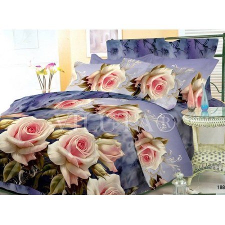 Модель 188 "Возрождение" от украинского производителя Viluta выполнена в фиолетово-синих тонах с розово-белыми розами. Каждая хозяйка захочет купить постельное бельё нежного небесного цвета, чтобы сделать комнату ещё изысканнее.