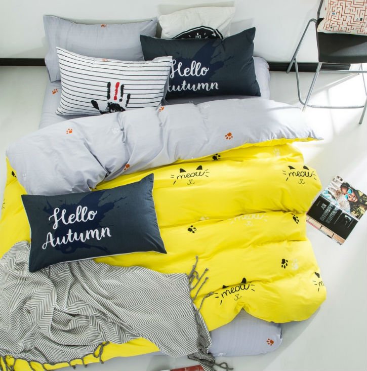 Модель Кошачьи лапки в желтых и серых тонах из натурального хлопчатобумажного ранфорса.