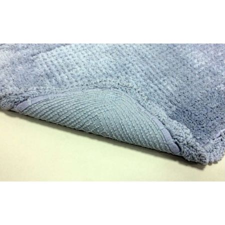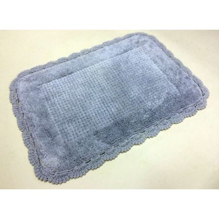 Мягкий прямоугольный коврик для ванной комнаты Deniz A Gri серо-синего цвета из 100% хлопка с кружевами по краям. Производство ТМ Irya (Турция).