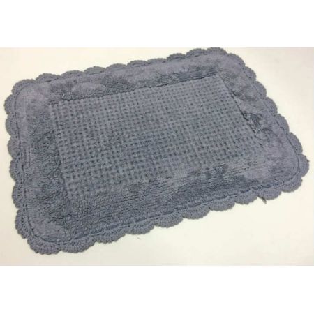 Мягкий прямоугольный коврик для ванной комнаты Deniz K Gri серого цвета из 100% хлопка с кружевами по краям. Производство ТМ Irya (Турция).