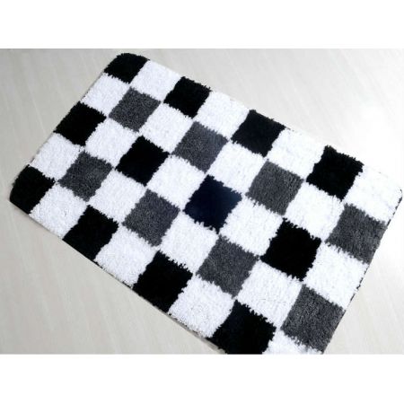 Мягкий прямоугольный коврик для ванной комнаты Montana Gri из 100% полиэстера в чёрную, серую и белую клетку. Производство ТМ Irya (Турция).