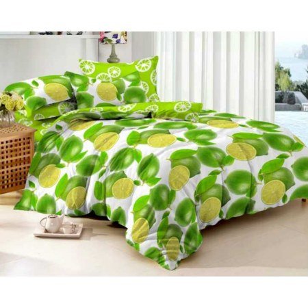 У модели ST 117 "Лайм" салатовая простынь и низ пододеяльника, а верх белый с изображениями множества зелёных плодов лайма.