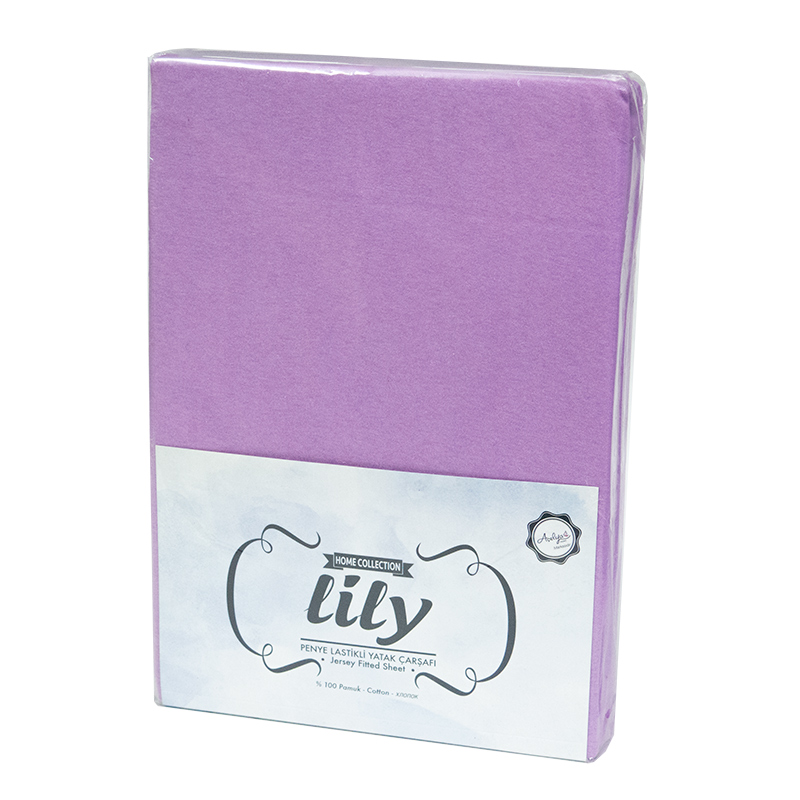 Простынь на резинке трикотажная Acelya Lily фиолетовая 160х200