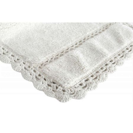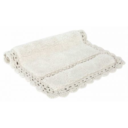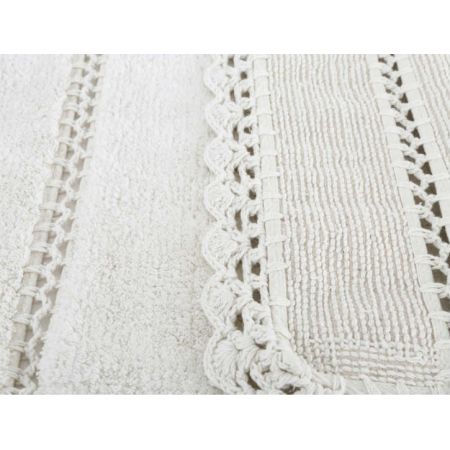Мягкий прямоугольный коврик для ванной комнаты Lorinda Ekru цвета экрю с кружевами по краям. Производство ТМ Irya (Турция).