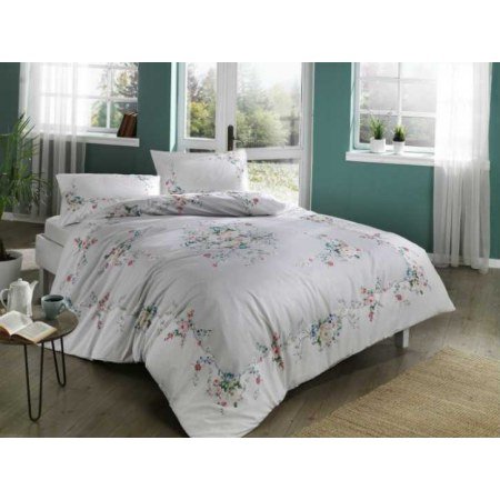 Комплект Madelyn V03 Gri светло-серого цвета производится из натуральной 100% хлопковой ткани. Ранфорс отлично пропускает воздух. Это прочный и очень износостойкий материал. Своей насыщенностью красок, не теряющих своей яркости даже спустя много лет, оправдывает вложенные в его покупку деньги.