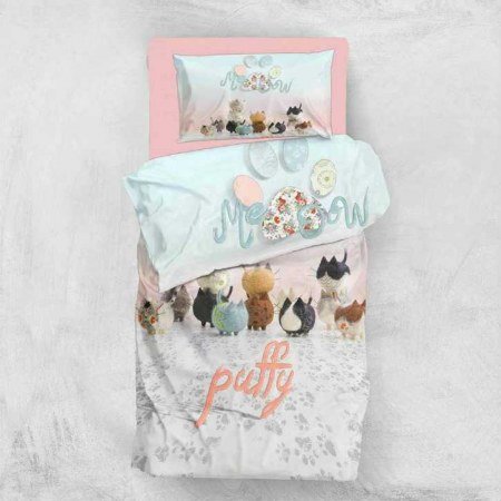 Полуторный (на односпальную кровать) комплект Medow Somon с изображением плюшевых котов из кукольного шоу.