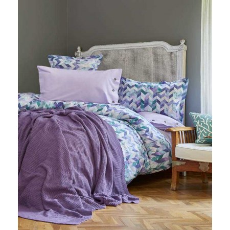 - комплект постельного белья из ранфорса в виде сиренево-голубых загзагов