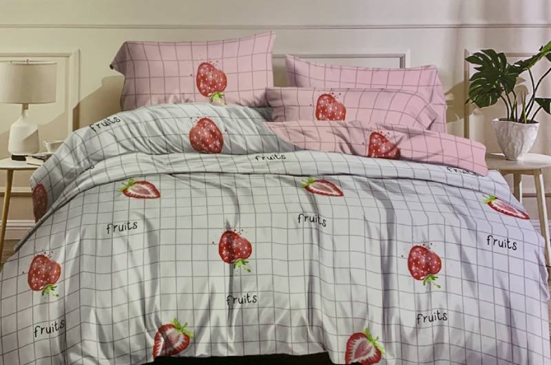 Комплект RL0246 в клетку с нарисованными клубничками.