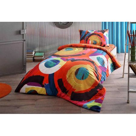 Комплект Motion Kirmizi окрашен в яркие круговые рисунки с преобладанием оранжевого цвета.