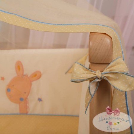 Весь набор выполнен из натурального 100% хлопка. Ткань очень приятная на ощупь, не линяет, не кашлатится, не садится. Долго служит, сохраняя свой первоначальный вид. Этот набор изготовлен специально для малышей - он не вызывает аллергии, не раздражает нежную кожу ребенка.