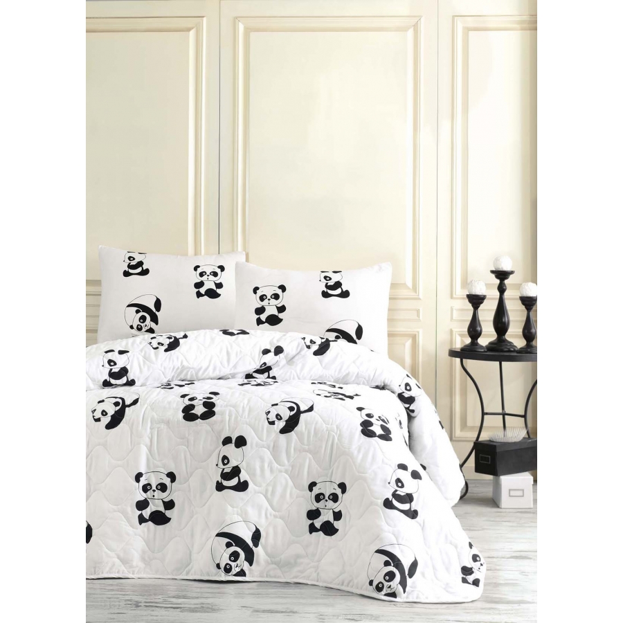 Стеганное покрывало Eponj Home Kral Panda Gri с наволочками