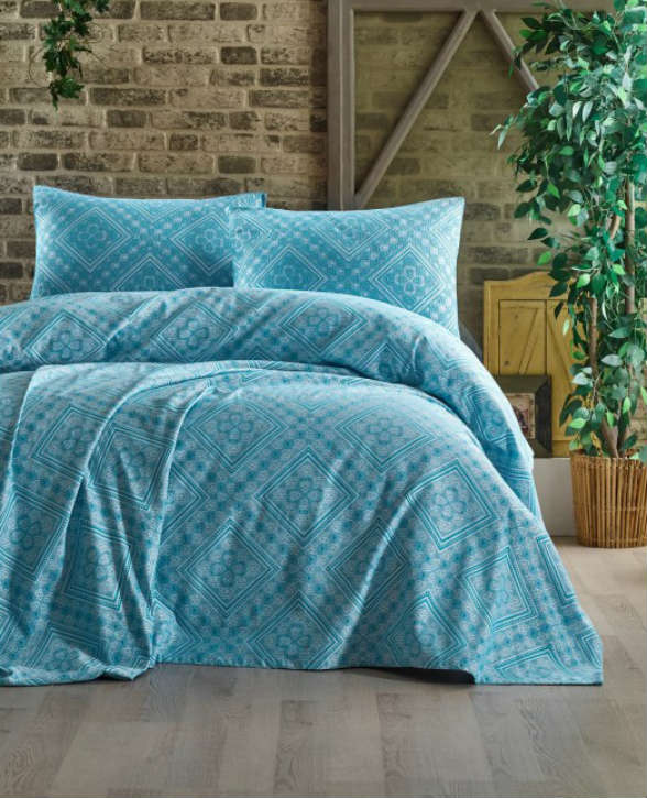 Турецкий производитель Eponj Home представляет жаккардовое пике-покрывало с двумя наволочками.